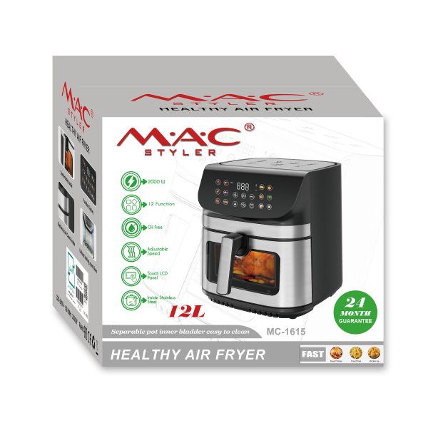 ایر فرایر 6 لیتری مک استایلر دارای طراحی لوکس، دارای سبد سرخ کردنی نچسب وقابلیت پخت کیک فنجانی،دارای فیلتر هوا برای جلوگیری از خروج بوی غذا و دارای سبد سرخ کردنی نچسب از ویژگی های ایرفرایر MC-1600 می باشد.